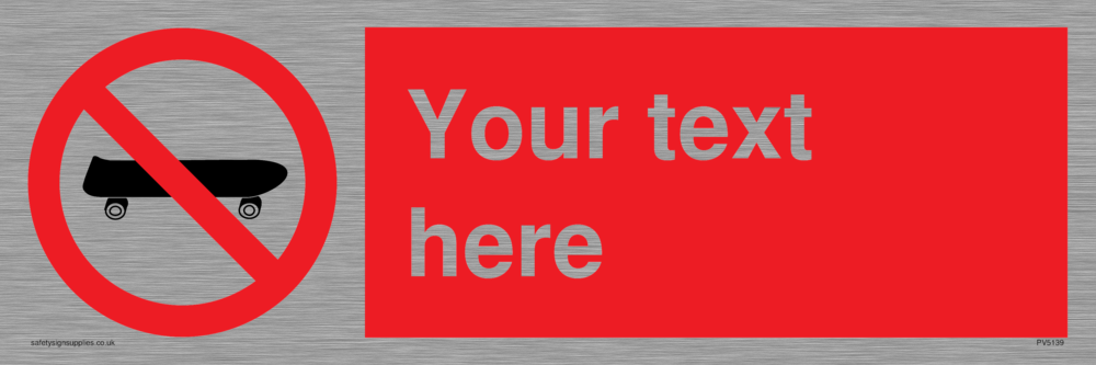 This sign contains a no skateboard symbol. Suitable for fixing with screws. Suitable for hanging with a premium hanging kit.