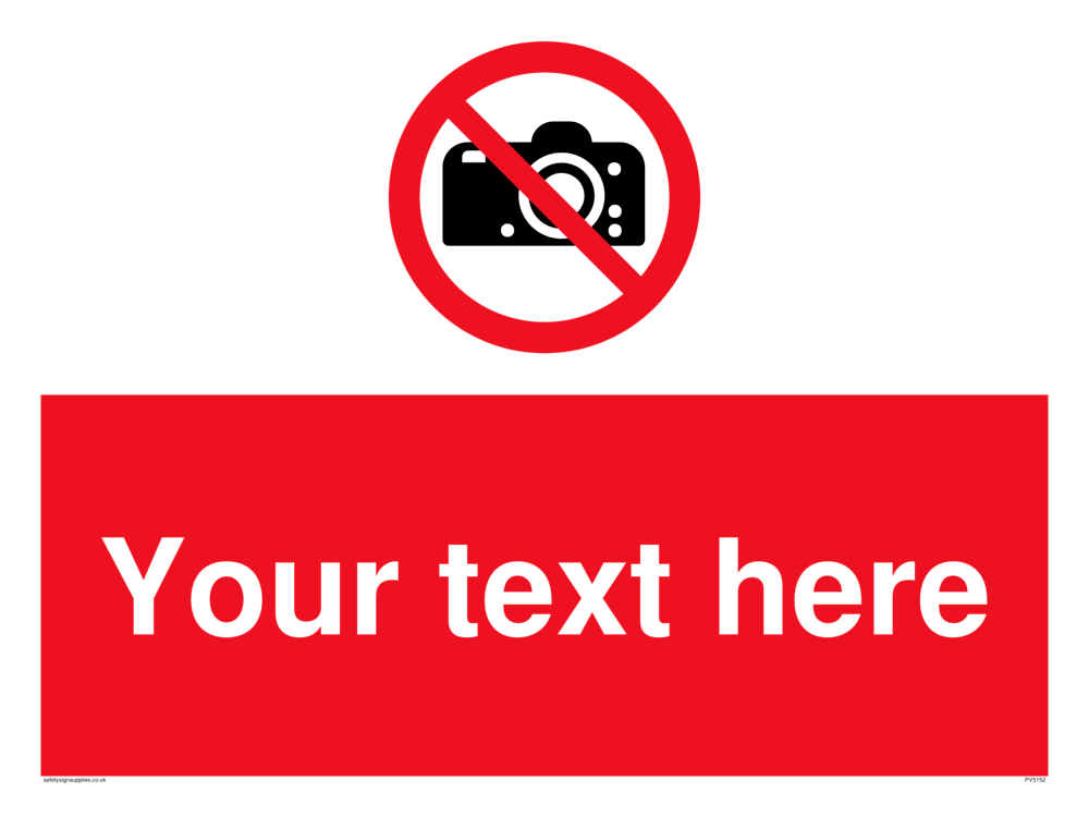 This sign contains a no photography symbol. It shows a camera, crossed through by a prohibition circle.