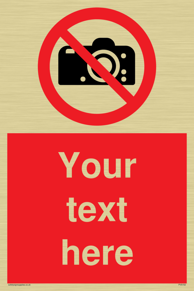 This sign contains a no photography symbol. It shows a camera, crossed through by a prohibition circle.