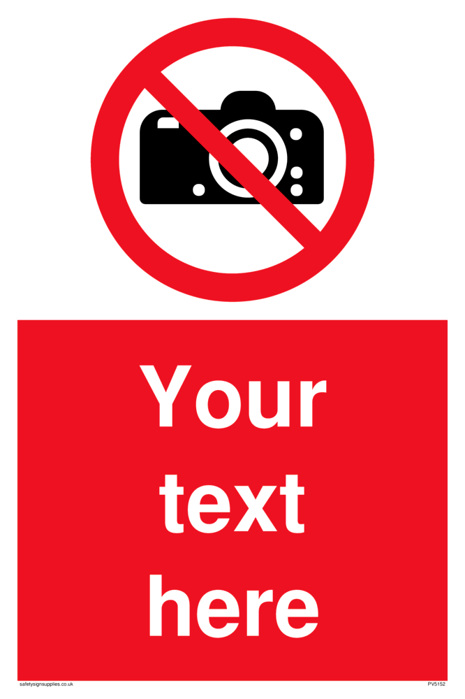 This sign contains a no photography symbol. It shows a camera, crossed through by a prohibition circle.
