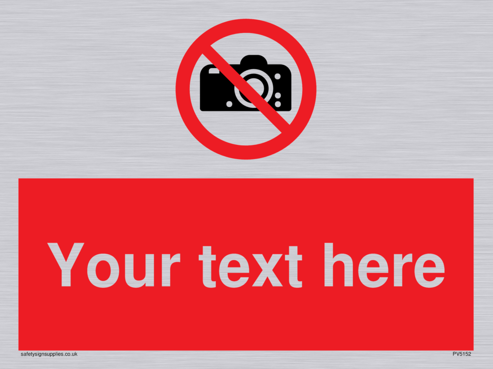 This sign contains a no photography symbol. It shows a camera, crossed through by a prohibition circle.