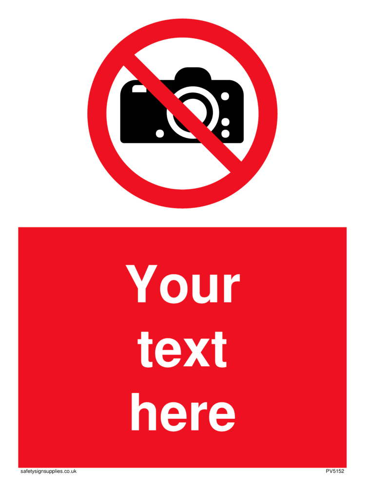 This sign contains a no photography symbol. It shows a camera, crossed through by a prohibition circle.