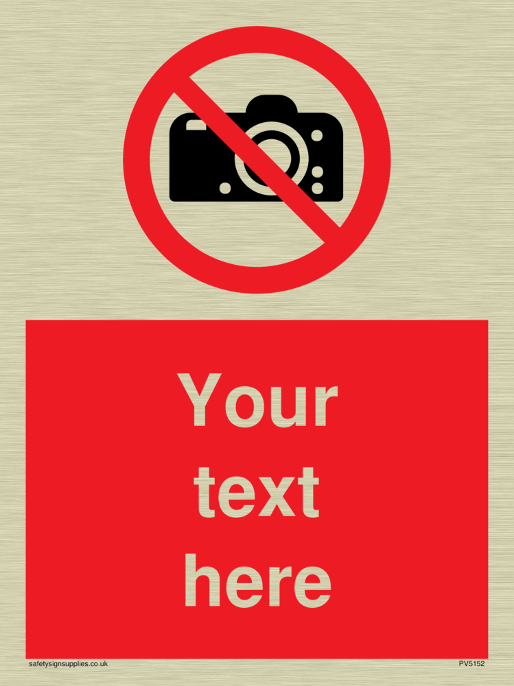This sign contains a no photography symbol. It shows a camera, crossed through by a prohibition circle.