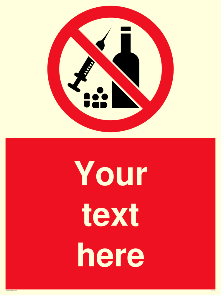This sign features a no alcohol or drugs symbol.
