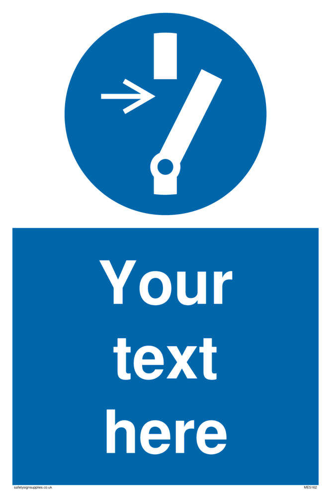 This signs uses a disconnect symbol. Often used when a part of system needs to be disconnected before opening, cleaning or maintenance. Suitable for fixing with screws.