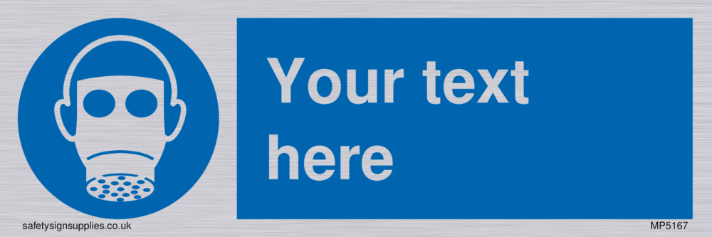 This sign contains a respirator required symbol - person wearing respirator in white within blue circle. Suitable for fixing with screws. Suitable for hanging with a premium hanging kit.