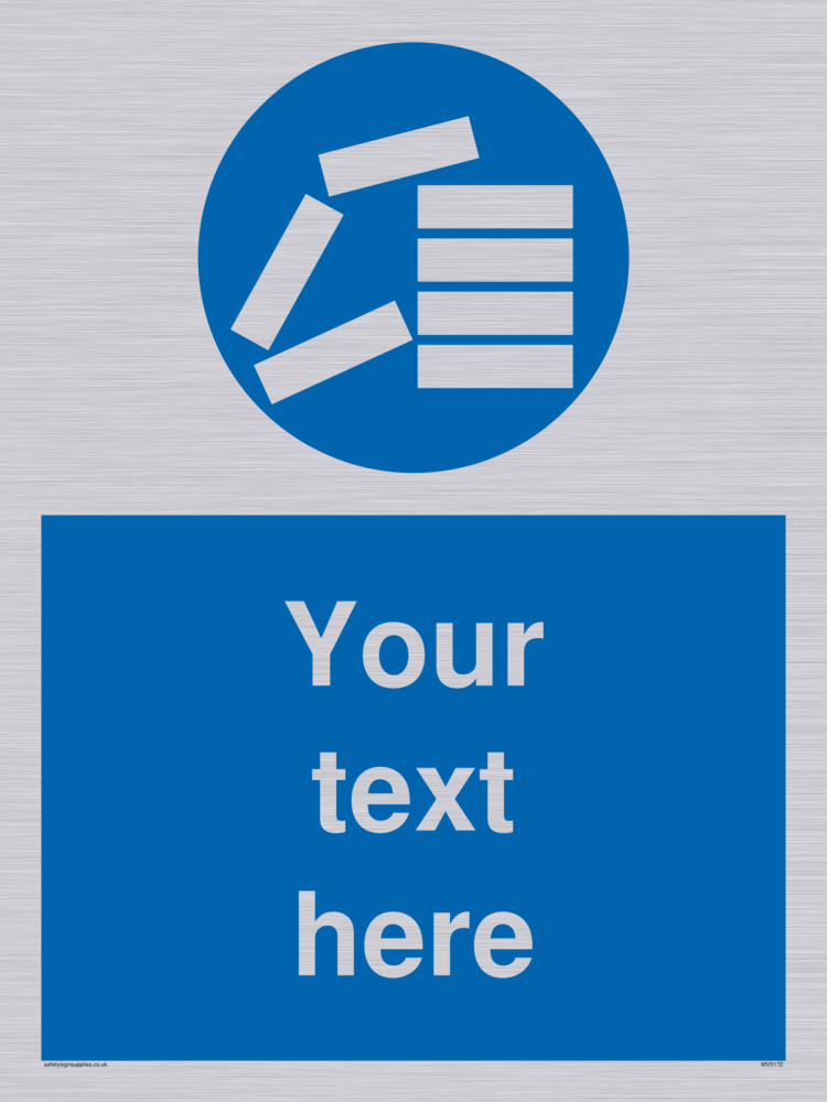 This sign contains a stack correctly symbol - pile of stacked boxes with one falling off the top in white on blue circle. Suitable for fixing with screws. Suitable for hanging with a premium hanging kit.