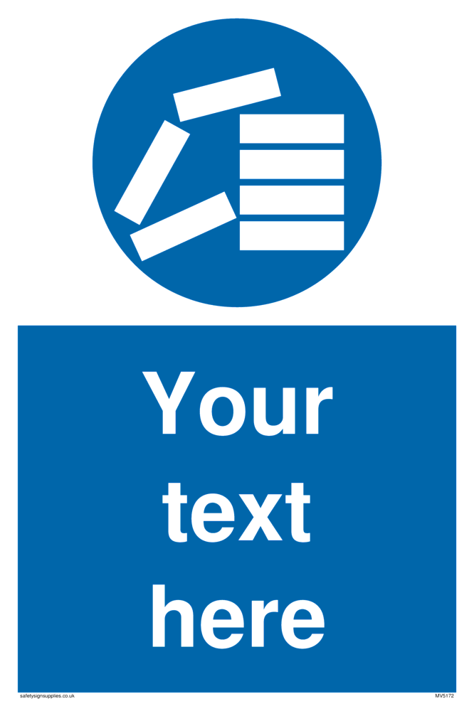 Suitable for mounting on a wall Suitable for mounting on a post. Custom signs contain the text required by the customer. With your your text and a standard safety sign symbol - a bespoke sign can fit any requirement. Signs in this range are from our standard range.