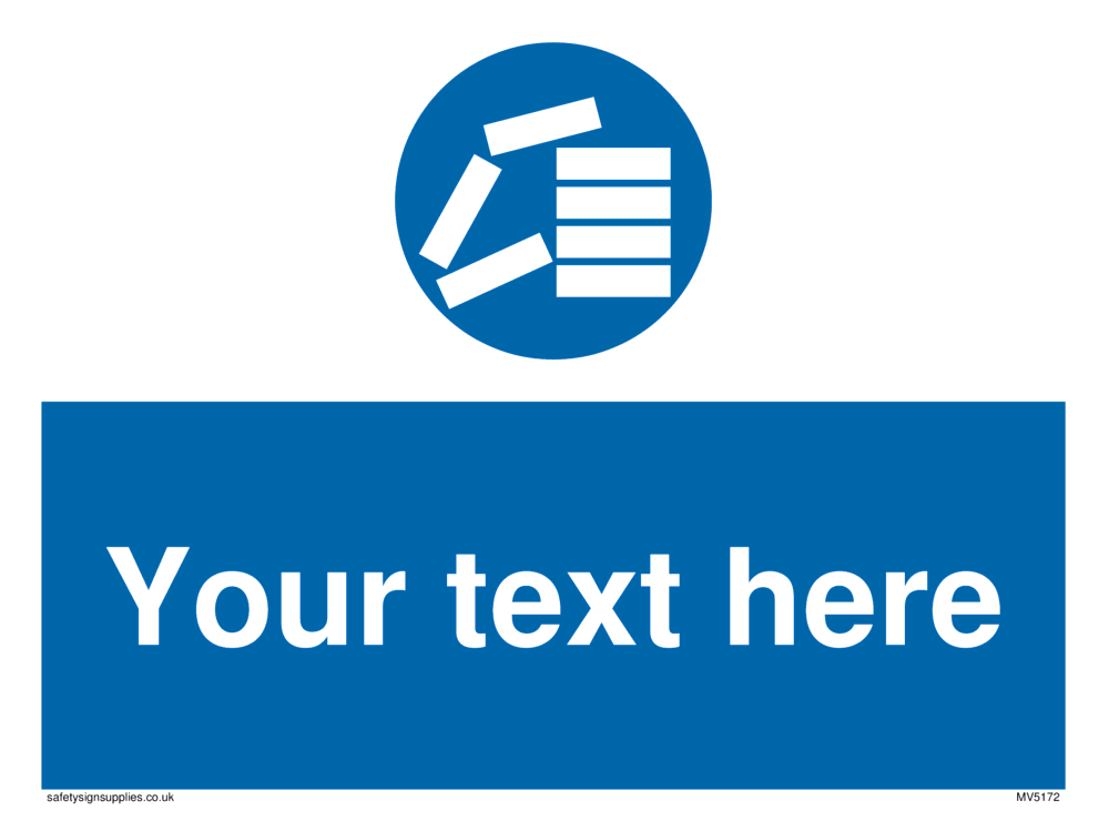 Custom signs contain the text required by the customer. With your your text and a standard safety sign symbol - a bespoke sign can fit any requirement. Signs in this range are from our standard range.