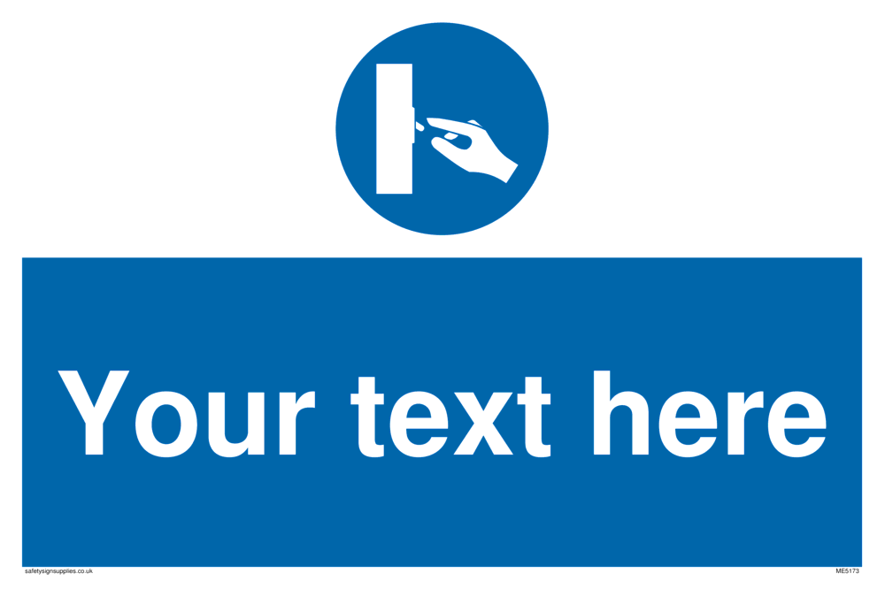 Suitable for mounting on a door. Suitable for mounting on cladding. This product is design to be mounted on the ceiling. Custom signs contain the text required by the customer. With your your text and a standard safety sign symbol - a bespoke sign can fit any requirement. Signs in this range are from our maximum choice range. Giving you the most choice of signs available in the UK.