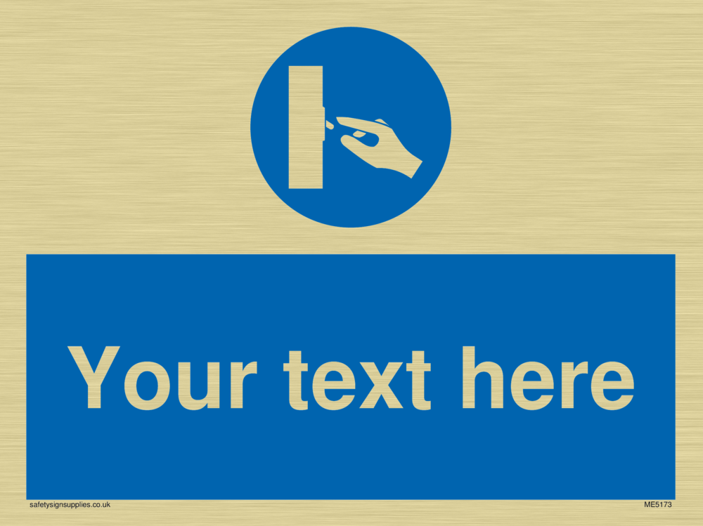 Suitable for fixing to a suspended ceiling. Suitable for mounting on an uneven surface Suitable for perpendicular installation Custom signs contain the text required by the customer. With your your text and a standard safety sign symbol - a bespoke sign can fit any requirement. Signs in this range are from our standard range.