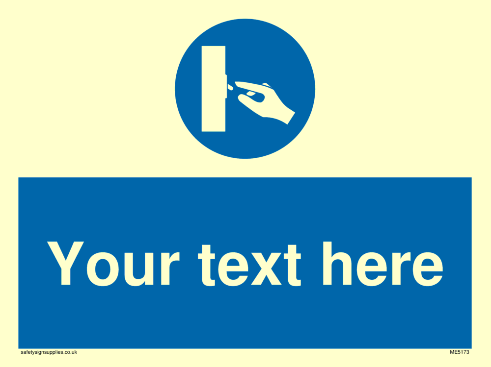Suitable for mounting on a door. Suitable for mounting on cladding. Suitable for mounting on a wall Custom signs contain the text required by the customer. With your your text and a standard safety sign symbol - a bespoke sign can fit any requirement.