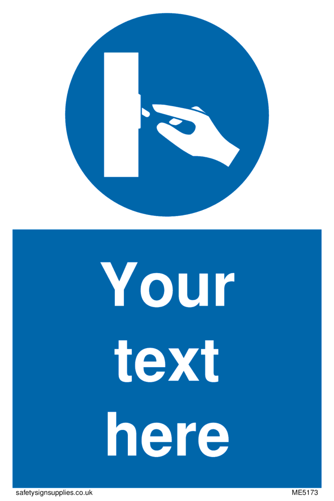 Custom signs contain the text required by the customer. With your your text and a standard safety sign symbol - a bespoke sign can fit any requirement. Signs in this range are from our standard range. Signs in this range are from our maximum choice range. Giving you the most choice of signs available in the UK.