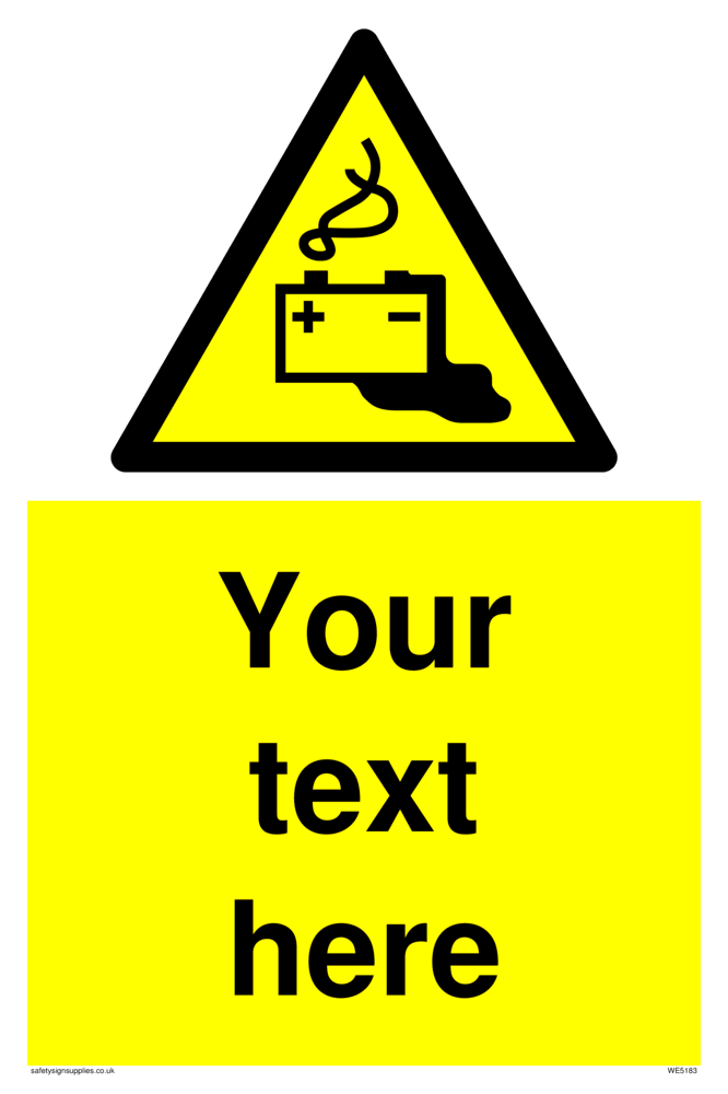 Suitable for fixing to a suspended ceiling. Suitable for mounting on a wall Custom signs contain the text required by the customer. With your your text and a standard safety sign symbol - a bespoke sign can fit any requirement.