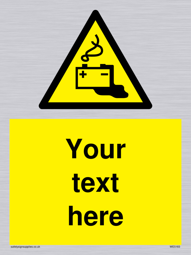 Suitable for mounting on a flat surface. Custom signs contain the text required by the customer. With your your text and a standard safety sign symbol - a bespoke sign can fit any requirement.