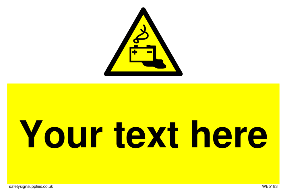 Custom signs contain the text required by the customer. With your your text and a standard safety sign symbol - a bespoke sign can fit any requirement.
