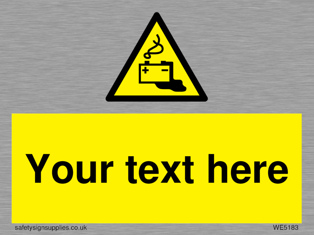 Suitable for mounting on a smooth surface Suitable for fixing to a suspended ceiling. Suitable for mounting on an uneven surface Custom signs contain the text required by the customer. With your your text and a standard safety sign symbol - a bespoke sign can fit any requirement.