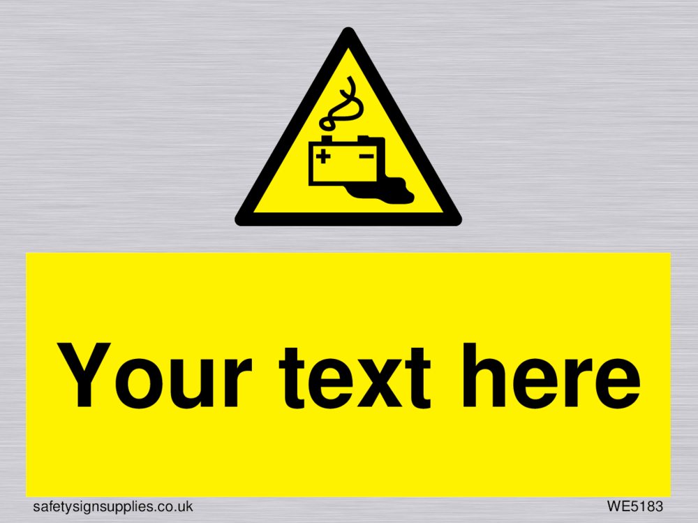 Suitable for mounting on a rough surface Suitable for mounting on a smooth surface Suitable for fixing to a suspended ceiling. Suitable for mounting on an uneven surface Custom signs contain the text required by the customer. With your your text and a standard safety sign symbol - a bespoke sign can fit any requirement.