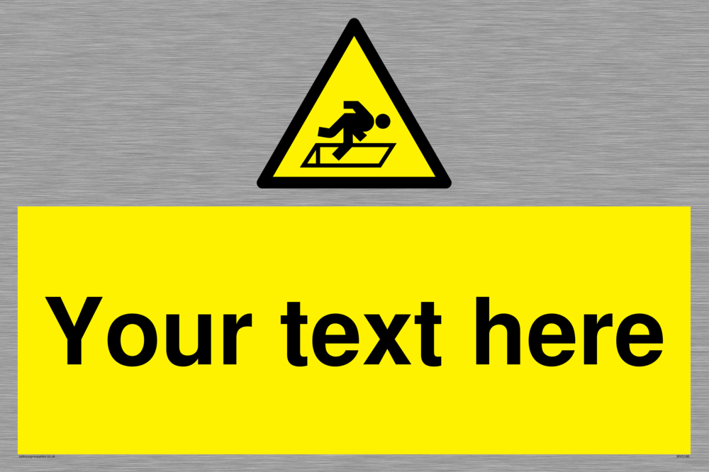 Suitable for mounting on a smooth surface Suitable for fixing to a suspended ceiling. Suitable for mounting on an uneven surface Custom signs contain the text required by the customer. With your your text and a standard safety sign symbol - a bespoke sign can fit any requirement.