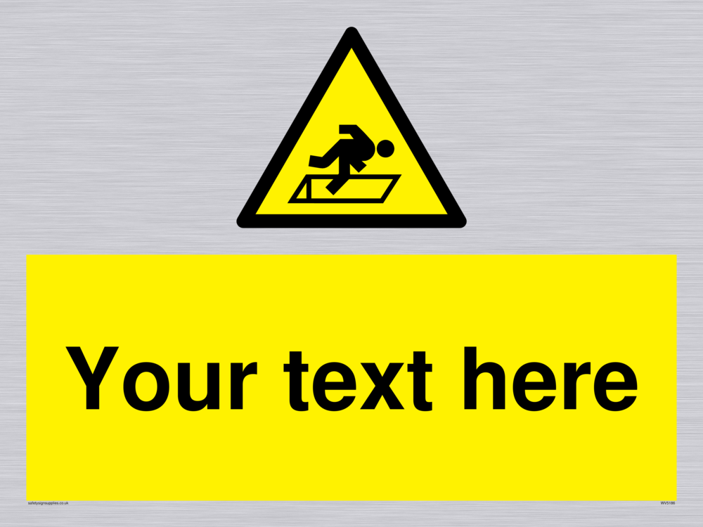 Suitable for mounting on a rough surface Suitable for mounting on a smooth surface Suitable for fixing to a suspended ceiling. Suitable for mounting on an uneven surface Custom signs contain the text required by the customer. With your your text and a standard safety sign symbol - a bespoke sign can fit any requirement.