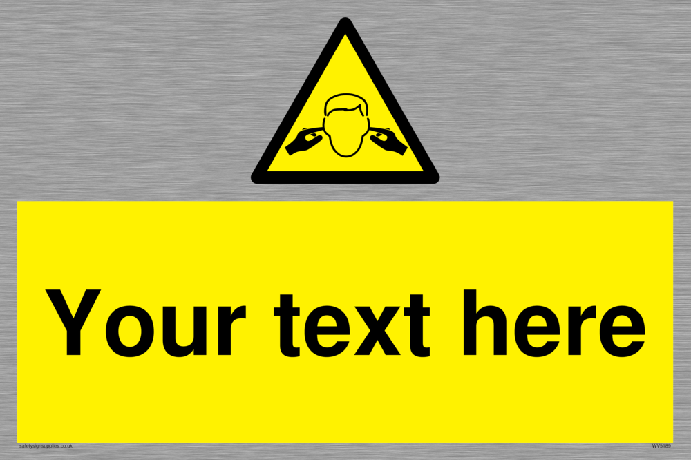 Suitable for mounting on a smooth surface Suitable for fixing to a suspended ceiling. Suitable for mounting on an uneven surface Custom signs contain the text required by the customer. With your your text and a standard safety sign symbol - a bespoke sign can fit any requirement.