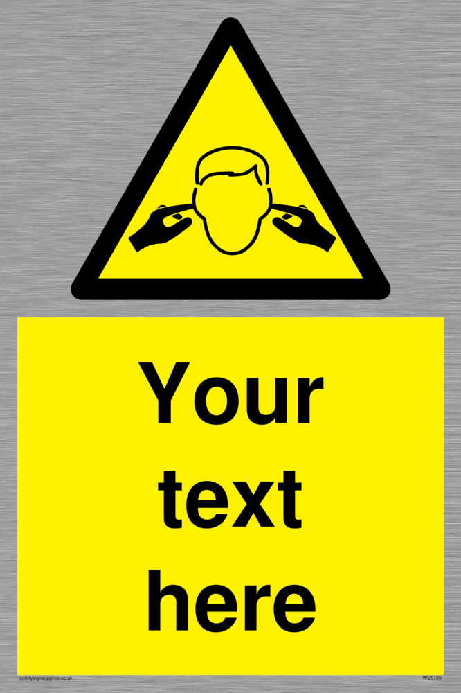 Suitable for mounting on a smooth surface Suitable for fixing to a suspended ceiling. Suitable for mounting on an uneven surface Custom signs contain the text required by the customer. With your your text and a standard safety sign symbol - a bespoke sign can fit any requirement.