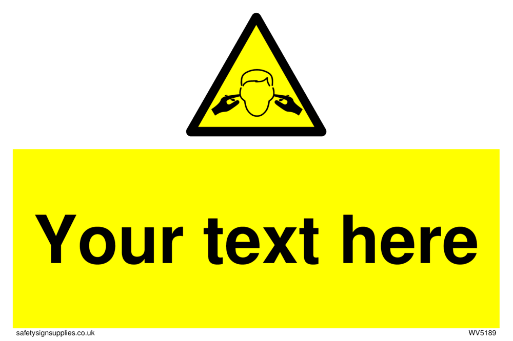 Suitable for fixing to a suspended ceiling. Suitable for mounting on a wall Custom signs contain the text required by the customer. With your your text and a standard safety sign symbol - a bespoke sign can fit any requirement.
