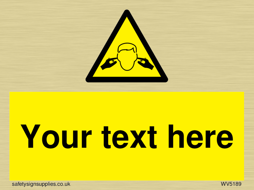 Suitable for mounting on a flat surface. Custom signs contain the text required by the customer. With your your text and a standard safety sign symbol - a bespoke sign can fit any requirement.
