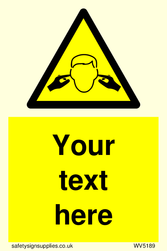 Suitable for mounting on a door. Suitable for mounting on a smooth surface Custom signs contain the text required by the customer. With your your text and a standard safety sign symbol - a bespoke sign can fit any requirement.