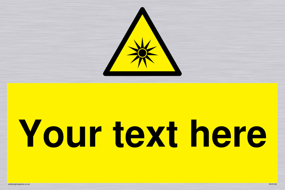 Suitable for mounting on a rough surface Suitable for mounting on a smooth surface Suitable for fixing to a suspended ceiling. Suitable for mounting on an uneven surface Custom signs contain the text required by the customer. With your your text and a standard safety sign symbol - a bespoke sign can fit any requirement.