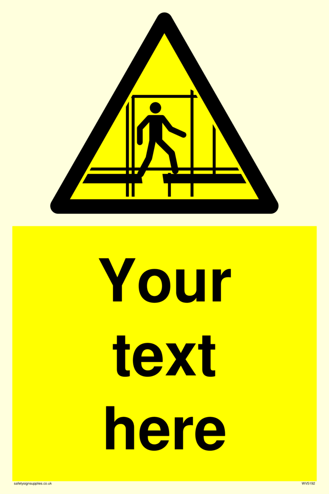 Suitable for mounting on a wall Suitable for mounting on a door. Suitable for mounting on a smooth surface Custom signs contain the text required by the customer. With your your text and a standard safety sign symbol - a bespoke sign can fit any requirement. Situational risk signs warn of a risk or danger from the situation, environment, area or place.