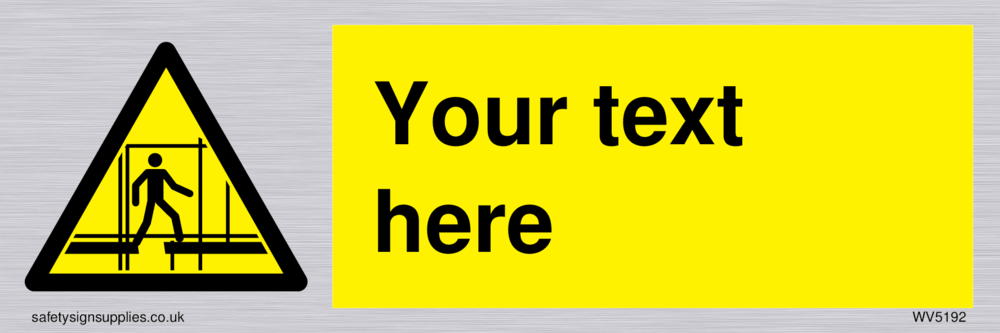 Suitable for mounting on a flat surface. Custom signs contain the text required by the customer. With your your text and a standard safety sign symbol - a bespoke sign can fit any requirement. Situational risk signs warn of a risk or danger from the situation, environment, area or place.