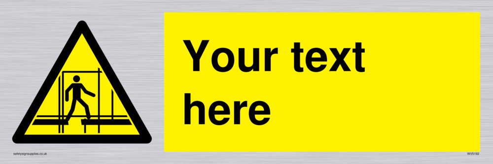 This sign contains scaffolding warning symbol - outline of a man on incomplete scaffolding in black on a yellow warning triangle with black border. Suitable for fixing with screws. Suitable for hanging with a premium hanging kit.