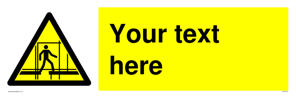 Suitable for fixing to a suspended ceiling. Suitable for mounting on a wall Custom signs contain the text required by the customer. With your your text and a standard safety sign symbol - a bespoke sign can fit any requirement. Situational risk signs warn of a risk or danger from the situation, environment, area or place.