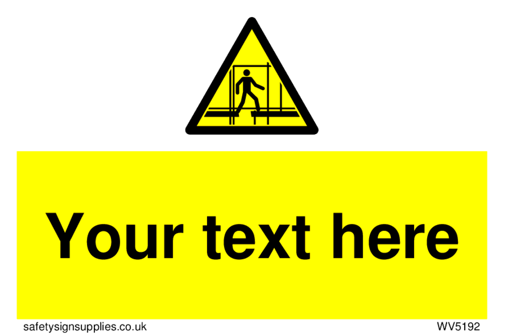 Custom signs contain the text required by the customer. With your your text and a standard safety sign symbol - a bespoke sign can fit any requirement.