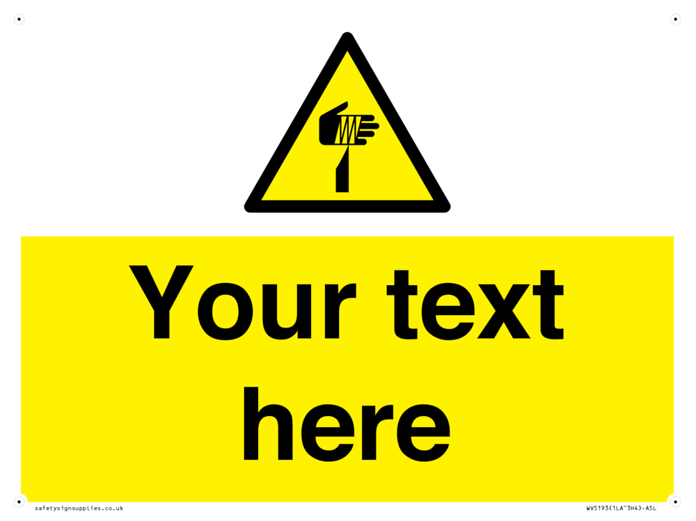 Custom Sharp Warning Sign. Add your own custom text. Normal delivery times apply. Yellow Sharp Warning Symbol. This symbol and sign layout complies with new EN7010 legislation that governs safety signs.