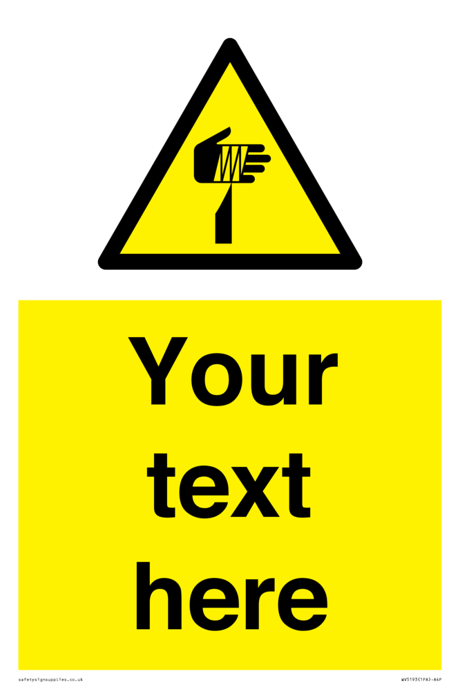 Custom Sharp Warning Sign. Add your own custom text. Normal delivery times apply. Yellow Sharp Warning Symbol. This symbol and sign layout complies with new EN7010 legislation that governs safety signs.