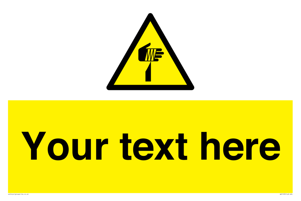Custom Sharp Warning Sign. Add your own custom text. Normal delivery times apply. Yellow Sharp Warning Symbol. This symbol and sign layout complies with new EN7010 legislation that governs safety signs.