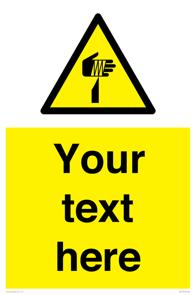 Custom Sharp Warning Sign. Add your own custom text. Normal delivery times apply. Yellow Sharp Warning Symbol. This symbol and sign layout complies with new EN7010 legislation that governs safety signs.