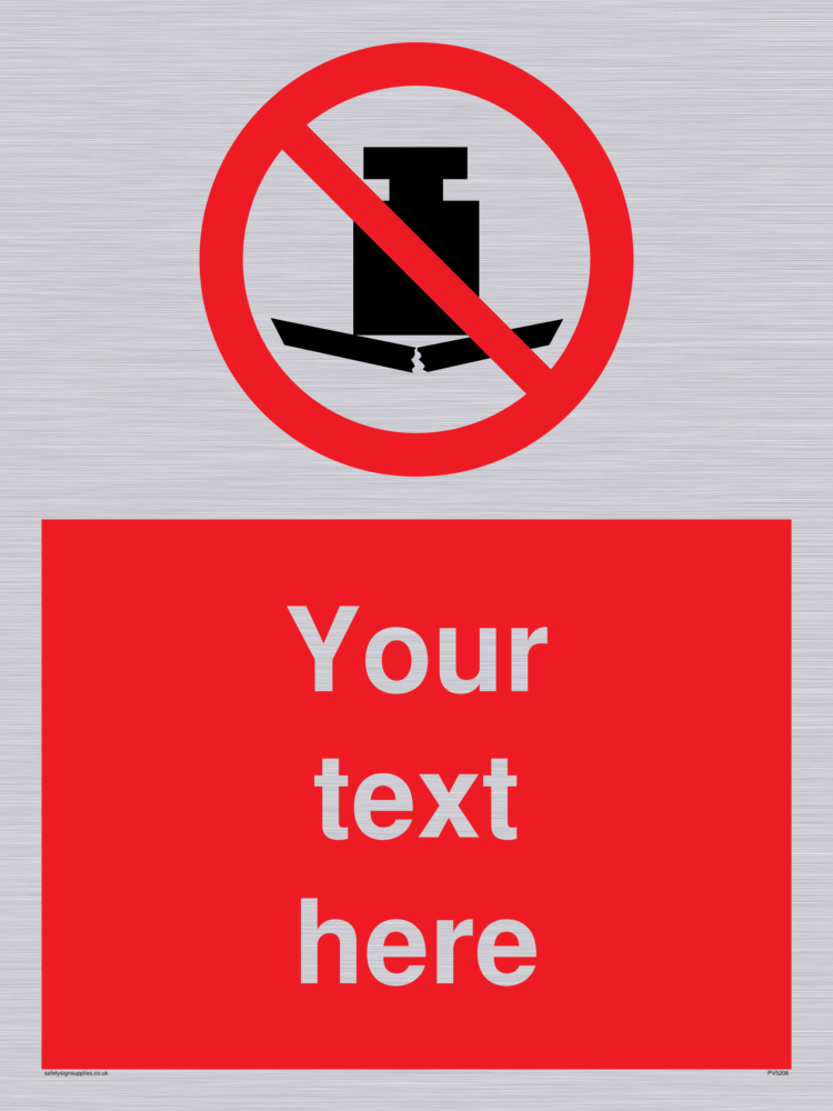 Suitable for mounting on a smooth surface Suitable for fixing to a suspended ceiling. Suitable for mounting on an uneven surface Suitable for perpendicular installation Custom signs contain the text required by the customer. With your your text and a standard safety sign symbol - a bespoke sign can fit any requirement.