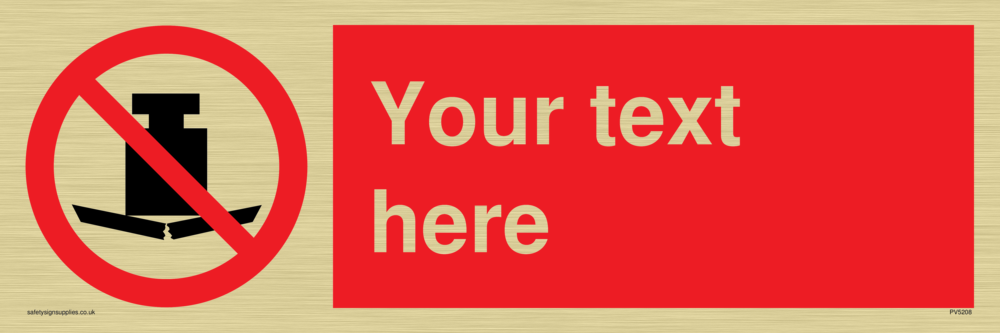 Suitable for mounting on a smooth surface Suitable for fixing to a suspended ceiling. Suitable for mounting on an uneven surface Suitable for perpendicular installation Custom signs contain the text required by the customer. With your your text and a standard safety sign symbol - a bespoke sign can fit any requirement.