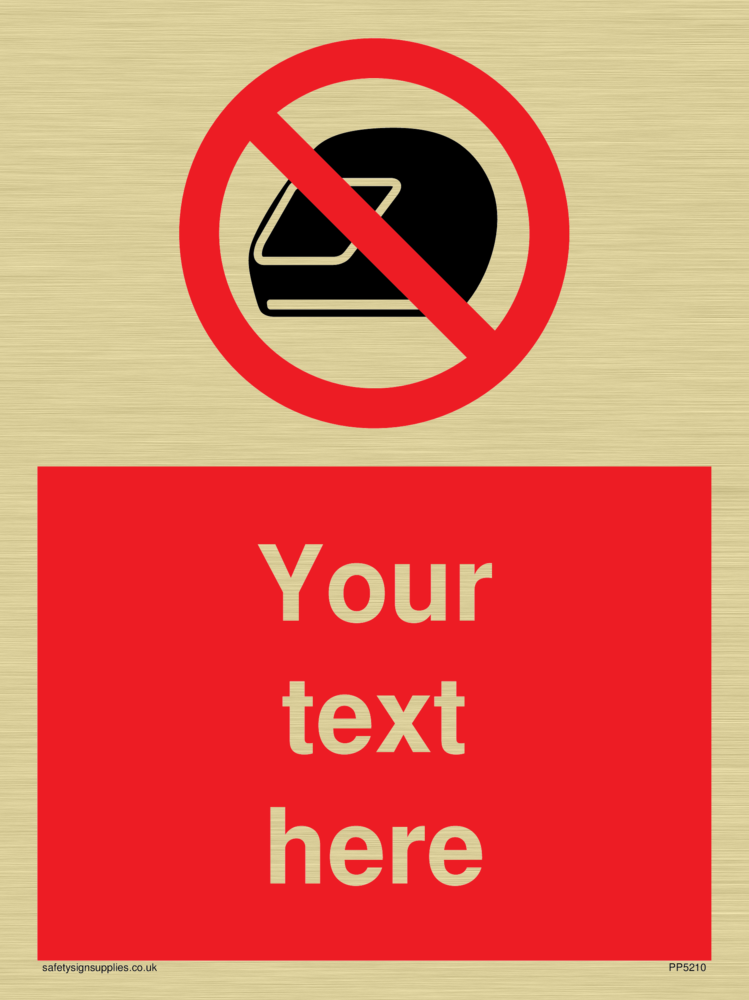 This sign uses motorcyle helmets. Often used at petrol stations etc. Suitable for fixing with screws. Suitable for hanging with a premium hanging kit.