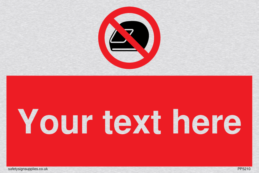 This sign uses motorcyle helmets. Often used at petrol stations etc. Suitable for fixing with screws. Suitable for hanging with a premium hanging kit.