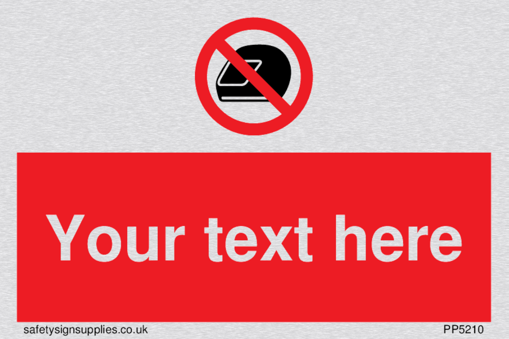 This sign uses motorcyle helmets. Often used at petrol stations etc. Suitable for fixing with screws. Suitable for hanging with a premium hanging kit.
