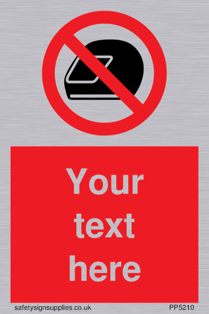 This sign uses motorcyle helmets. Often used at petrol stations etc. Suitable for fixing with screws. Suitable for hanging with a premium hanging kit.