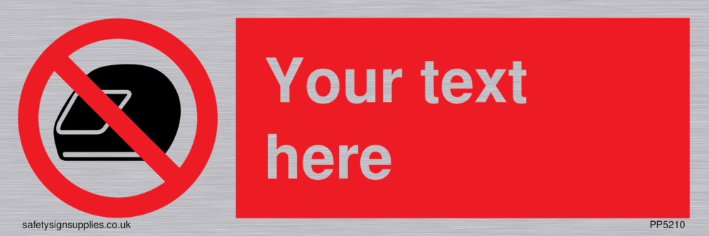 This sign uses motorcyle helmets. Often used at petrol stations etc. Suitable for fixing with screws. Suitable for hanging with a premium hanging kit.