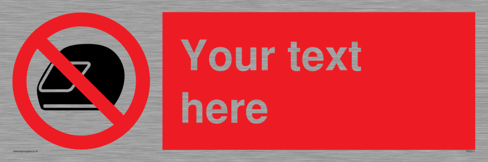 This sign uses motorcyle helmets. Often used at petrol stations etc. Suitable for fixing with screws. Suitable for hanging with a premium hanging kit.