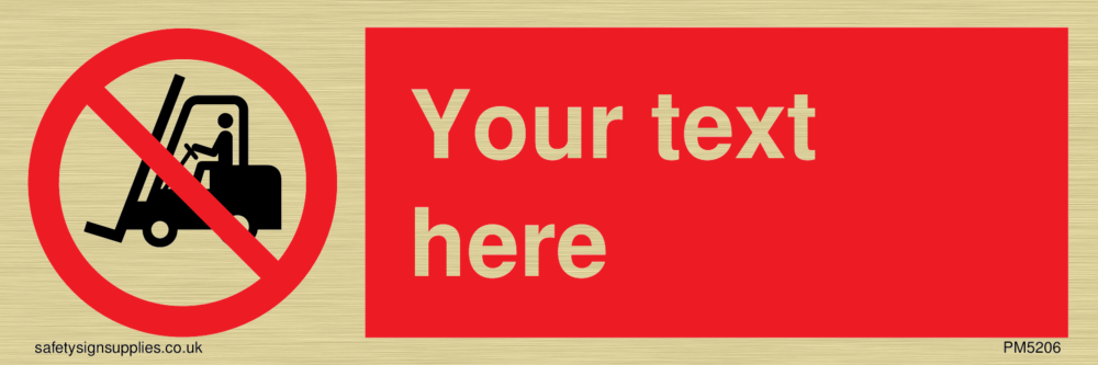 This sign contains a no fork lift trucks symbol - fork lift with red prohibition circle and line diagonally crossed through.