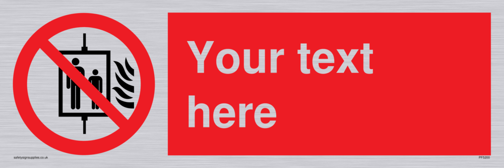 This sign contains a do not use lift symbol. Lift in black within red circle with diagonal line crossed through.