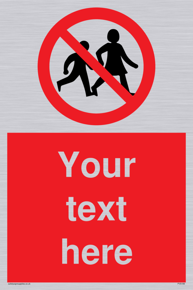 This sign contains a no children symbol - children outline in black with a red circle crossed through.